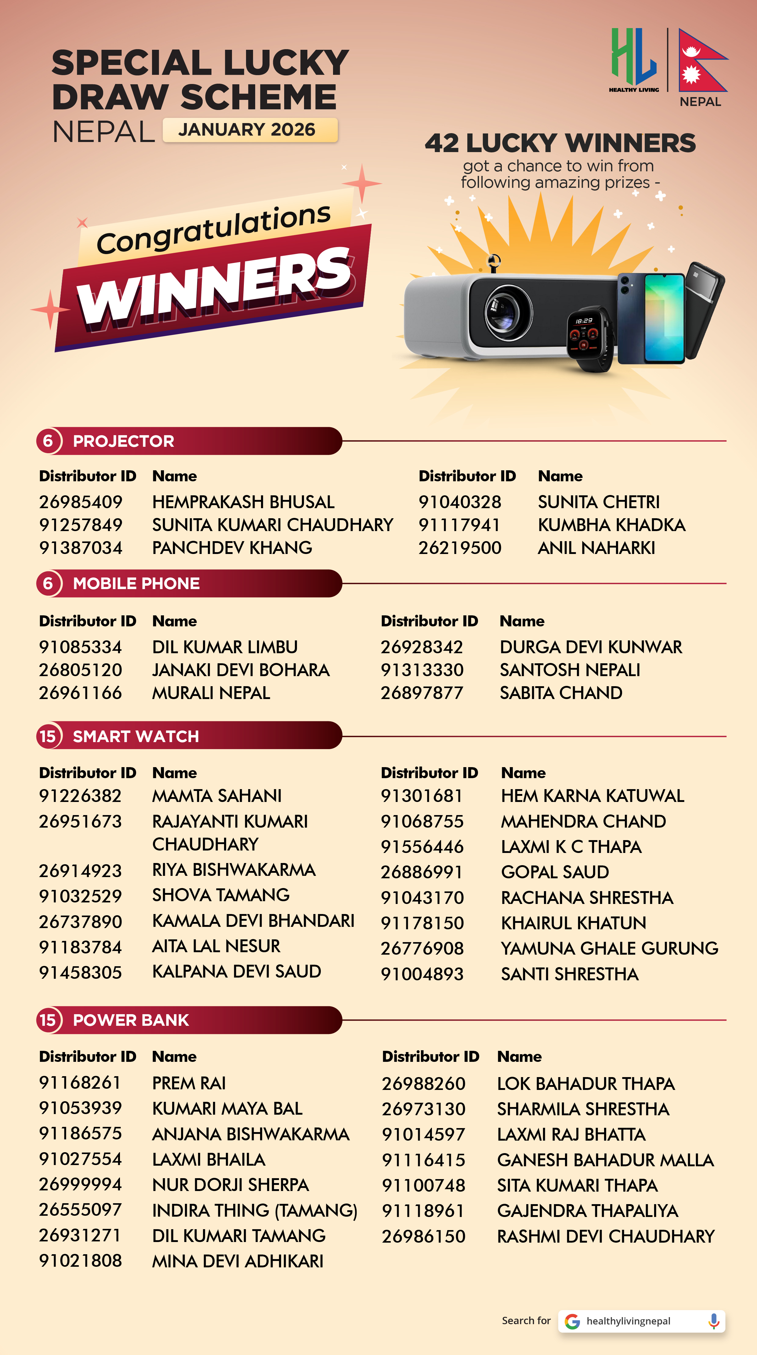 Healthy Living is an organisation that aims at spreading holistic wellness throughout Nepal with the help of world-class health, wellness, personal care, cosmetics and other products from different categories that are manufactured in GMP and ISO-certified state-of-the-art manufacturing facilities, these products are of superior quality and they exalt the consumer experience.